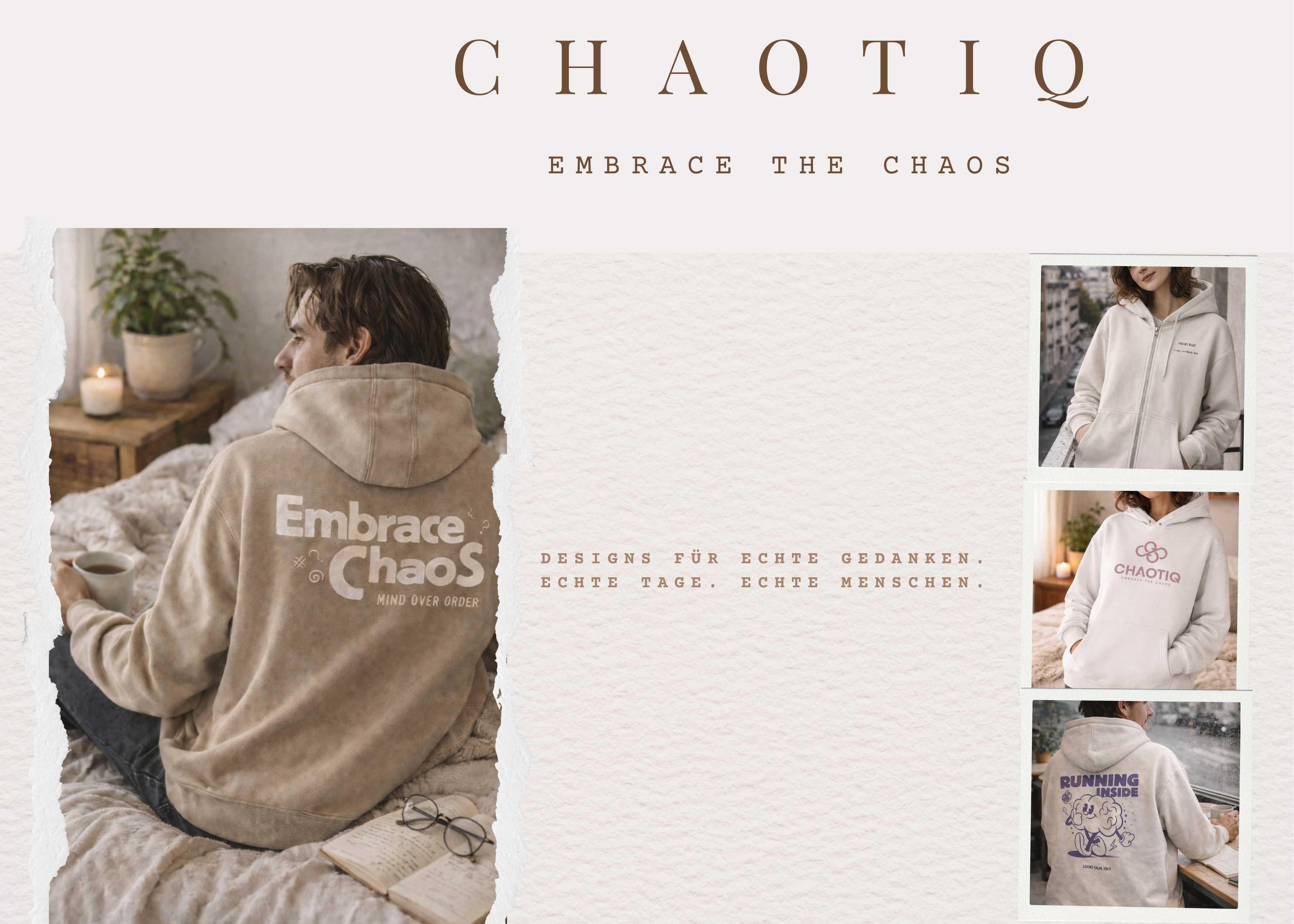 Wir sind eine Marke, die für Offenheit, Stärke und Selbstakzeptanz steht. Unsere Designs sollen Mut machen, Gespräche öffnen und zeigen: Du bist nicht allein. Jedes Teil trägt eine Botschaft für mehr Bewusstsein, echte Verbindung und mentale Gesundheit.